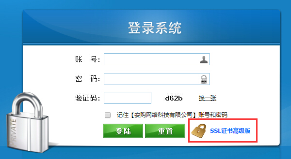 SSL證書高級版和升級版用戶在登陸界面和登陸進入后的界面有版本文字顯示,普通版用戶的兩個界面地方是無任何版本文字顯示的。