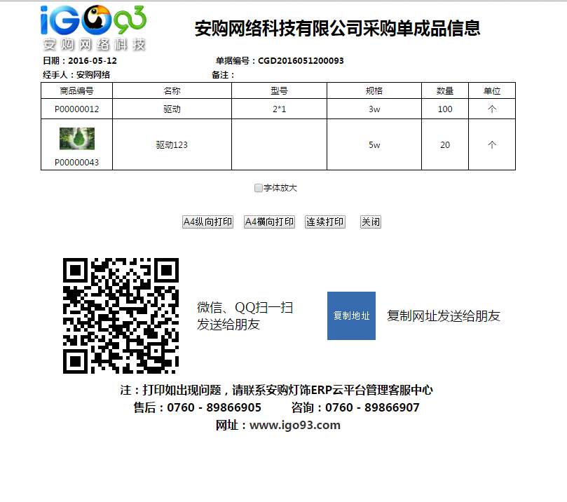 1,生產(chǎn)加工>采購(gòu)單列表 的單據(jù)詳細(xì)頁(yè)的打印和按供應(yīng)商打?。?/span>